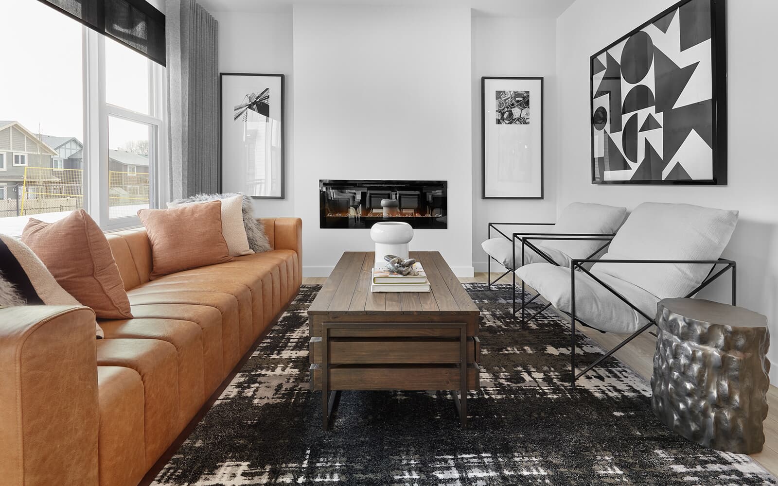 – Modern electric fireplace in the living room
